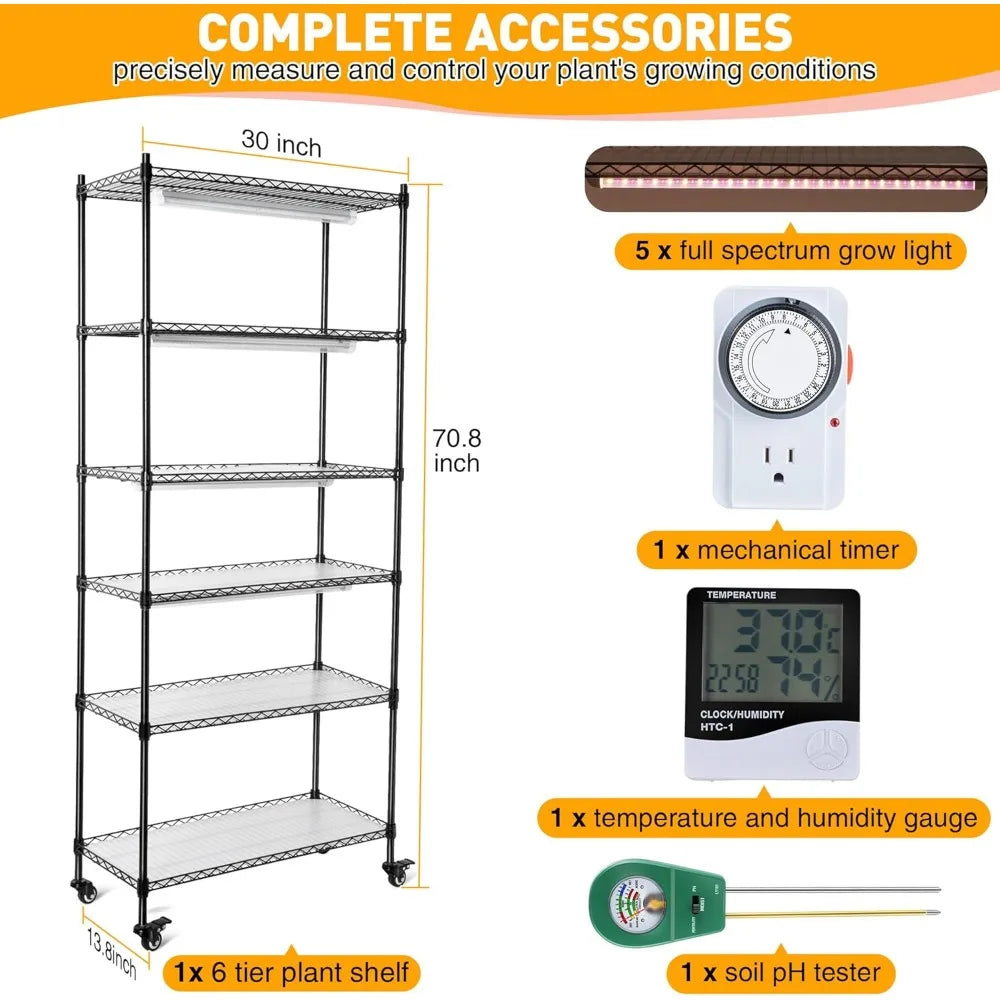 - Complete indoor greenhouse kit includes rack, cover, grow light, 6 waterproof pads, timer, thermometer-hygrometer, pH tester, and easy assembly for precise growing conditions you can trust.